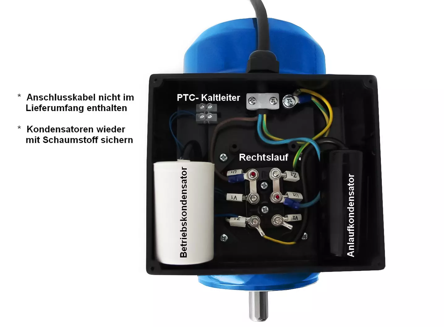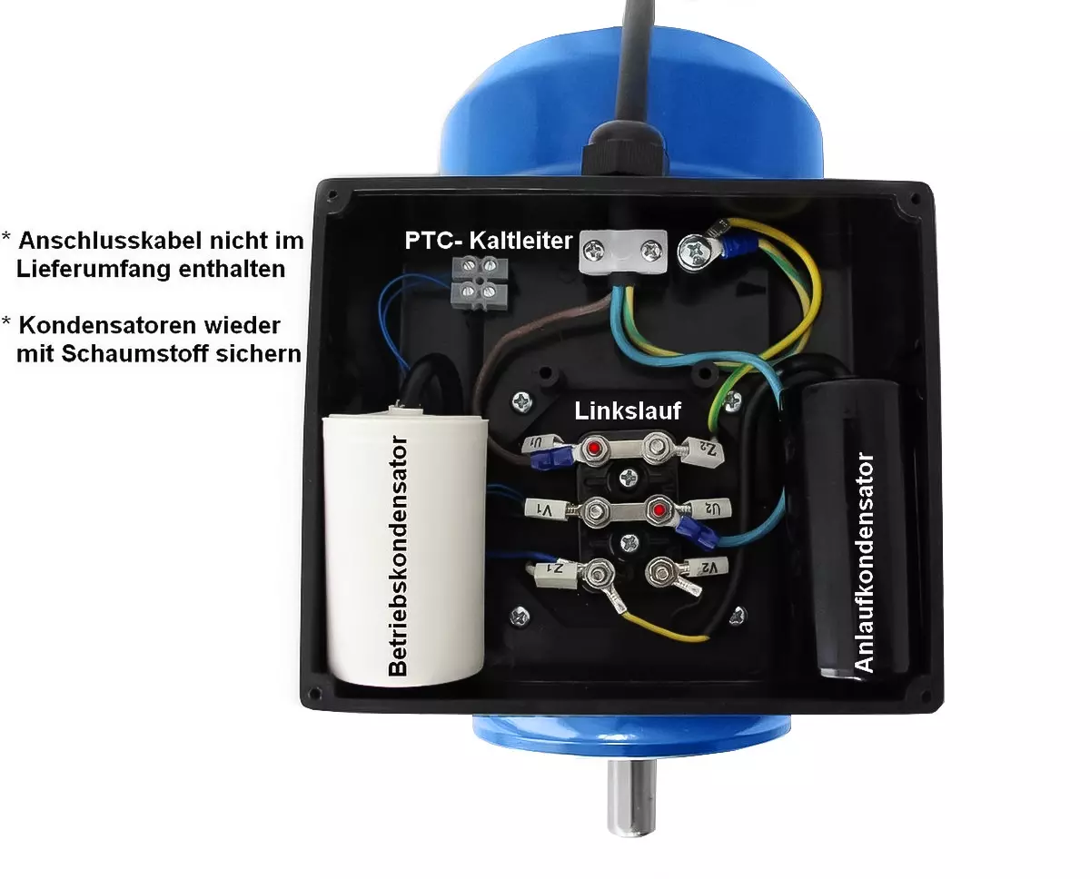Startkondensatorn stängs av med en centrifugalbrytare när varvtalet är uppnått.